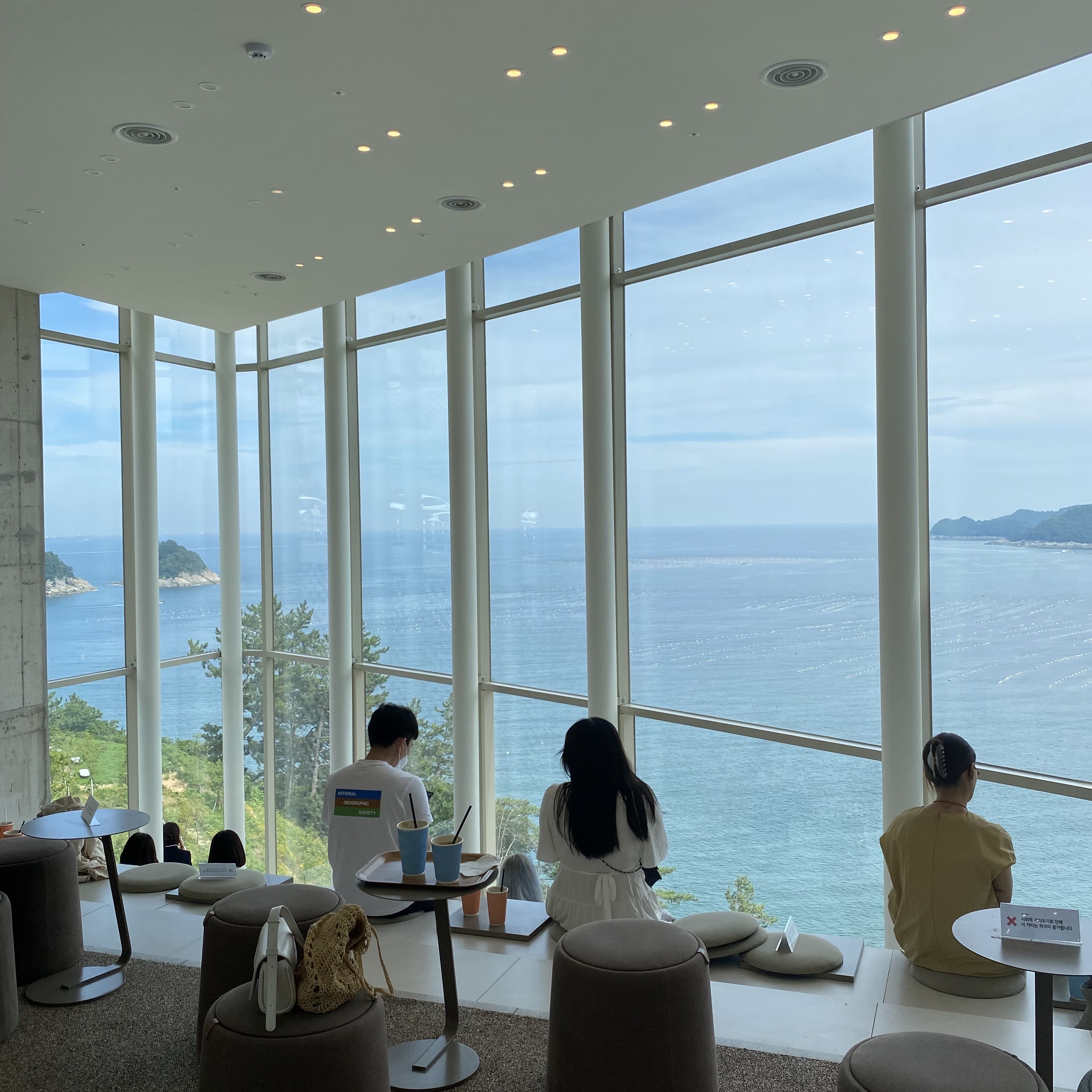 모이핀 3층은 창문이 모두 통유리로 돼있어 바다를 한눈에 내려볼 수 있다. 크~
